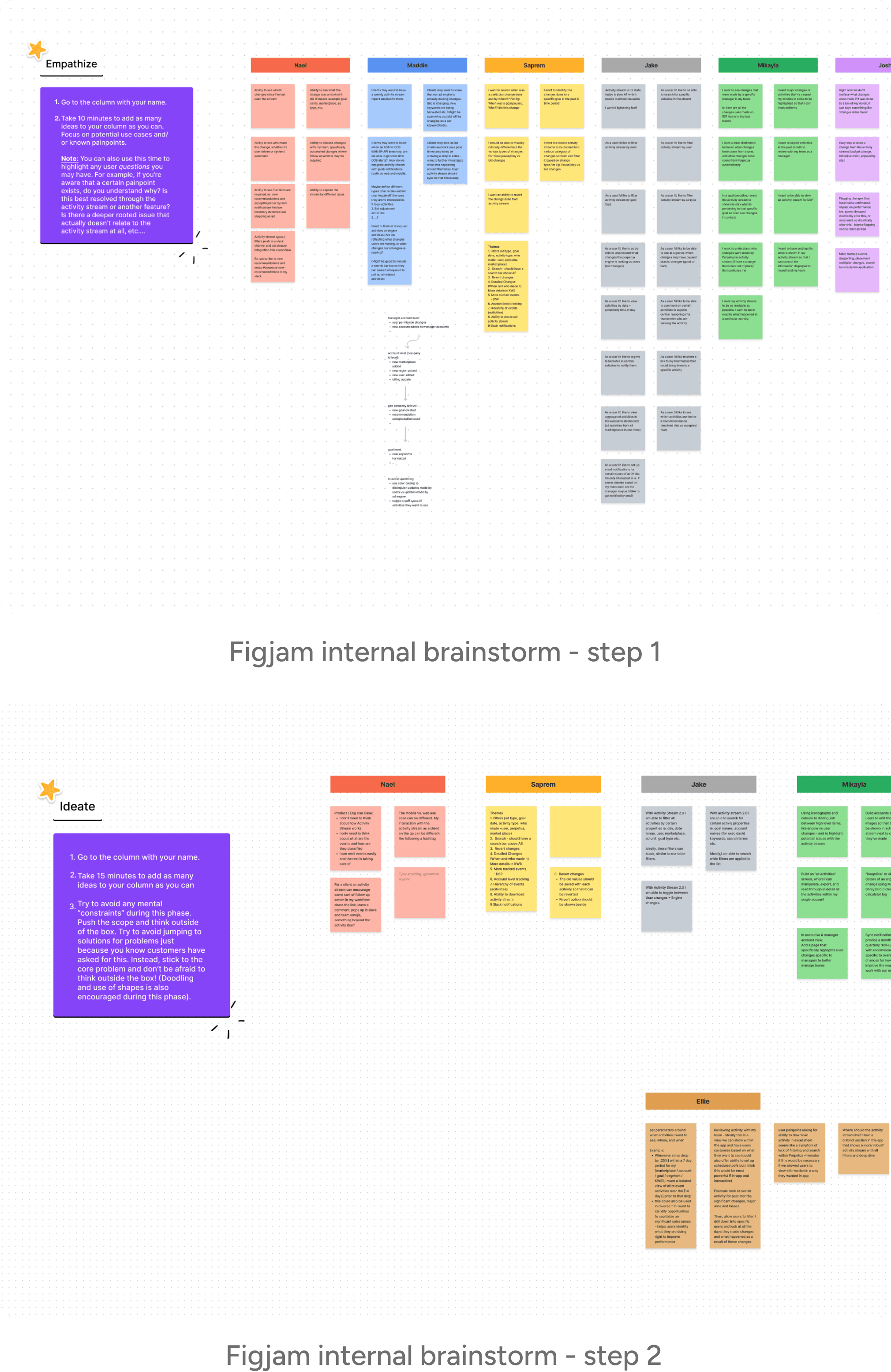 Through this brainstorm, I identified four key methods users employ when trying to pinpoint specific activities. Users need to easily locate activity items based on: